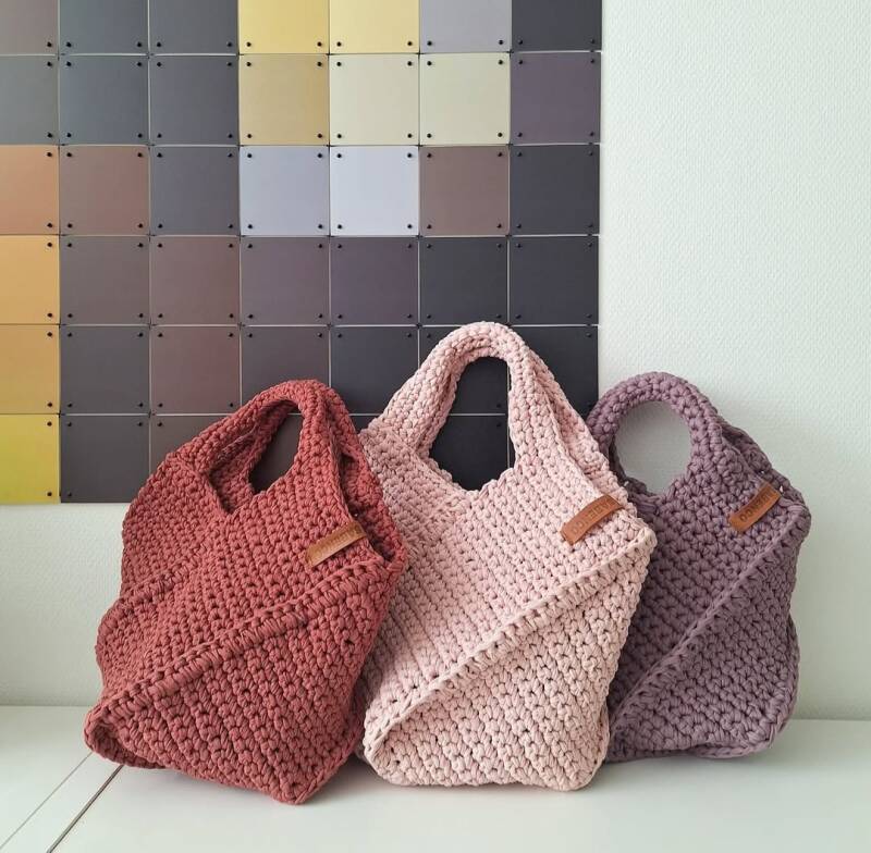 Deze tas is gehaakt in een Kubus.