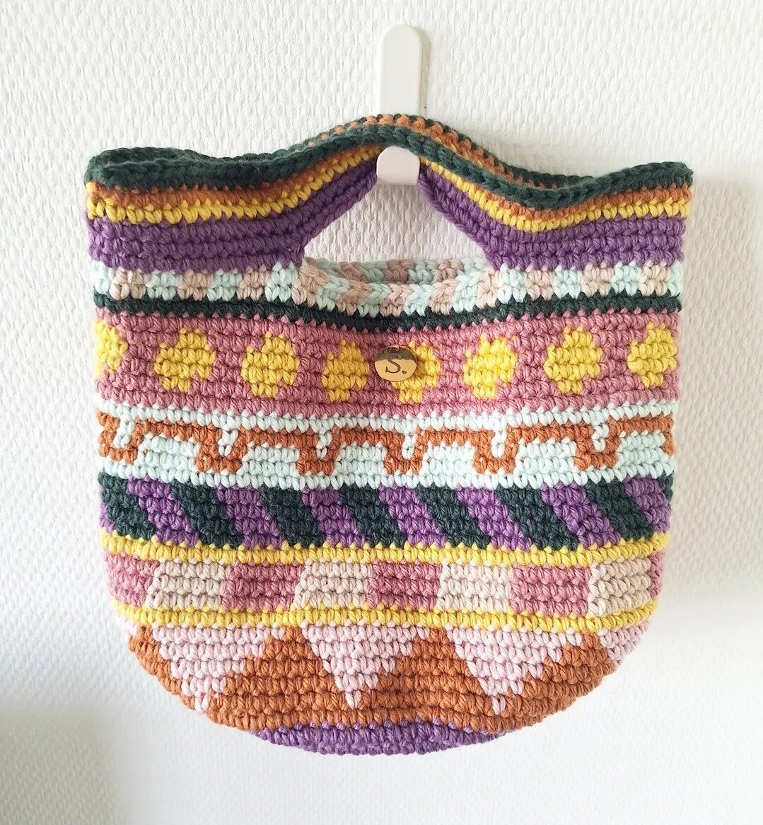 Deze tassen zijn uniek, want ze worden uit de lossen pols gehaakt. Geen patroon is hetzelfde.